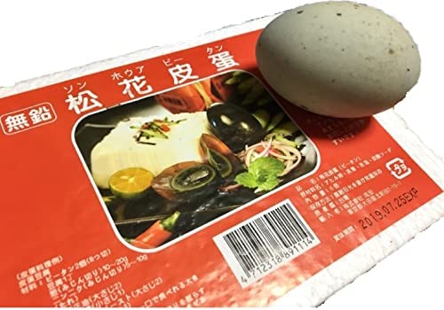 商品名 :松花皮蛋 原材料名 :アヒル卵、茶葉、食塩、炭酸ソーダ